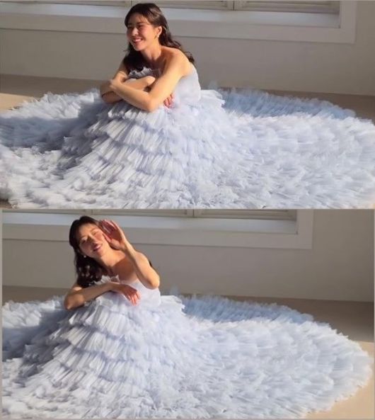 영상 속 박하나는 어깨가 드러나는 하늘빛 웨딩드레스를 입고 청초한 분위기를 자아냈다. 창가로 스며든 햇살을 받으며 살짝 윙크하는 모습은 사랑스러움을 더했고, 결혼을 앞둔 예비신부의 설렘 가득한 감성이 고스란히 담겼다.
