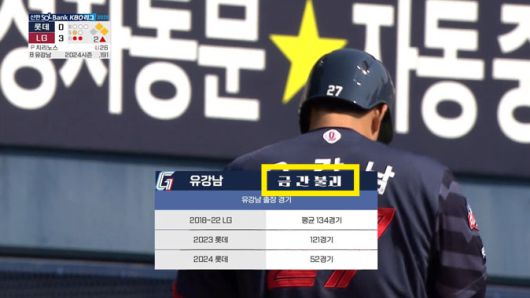 당시 중계진은 해당 자막에 대해 "놀린 거 아니냐?"라며 "롯데 자이언츠가 야심 차게 FA로 유강남을 영입했는데 기대했던 것만큼 성적이 좋지 않았다"고 말했다. 유강남이 롯데 이적 이후 부상으로 출전하지 못한 점을 '금강불괴' 별명을 변형해 표현한 것으로 보인다.