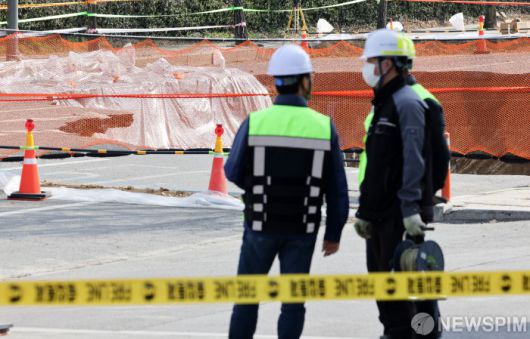 [서울=뉴스핌] 최지환 기자 = 31일 오후 서울 강동구 명일동 대형 땅꺼짐(싱크홀) 사고 현장에서 중앙지하사고조사위원회(사조위) 위원들이 현장을 조사하고 있다. 사조위는 이날부터 오는 5월30일까지 2개월간 조사를 실시할 예정이다. 2025.03.31 choipix16@newspim.com |