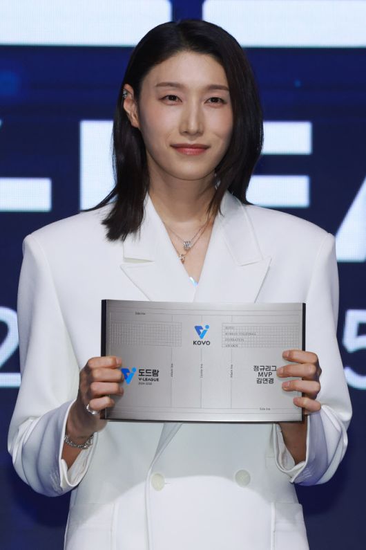 김연경은 14일 서울 서대문구 홍은동 스위스 그랜드호텔에서 열린 도드람 2024~25 V리그 시상식에서 기자단 투표 31표를 모두 쓸어담으면서 만장일치로 정규시즌 여자부 MVP에 등극했다.