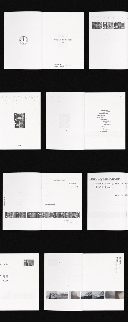 티저 이미지에는 ‘Cause I only cry in the rain’, ‘시간을 되돌린 채’, ‘이 사진 속 miss you a lot’, ‘봄비 내리는 밤’ 등 가사 일부가 타자기 텍스트가 흐르듯 인쇄되어 있으며, 흑백 필름 컷들이 감정의 파편처럼 배치되어 있다. 이는 가사 한 줄, 사진 한 장만으로도 감정과 기억이 은밀히 되살아나는 이번 앨범 콘셉트를 명확히 보여준다.