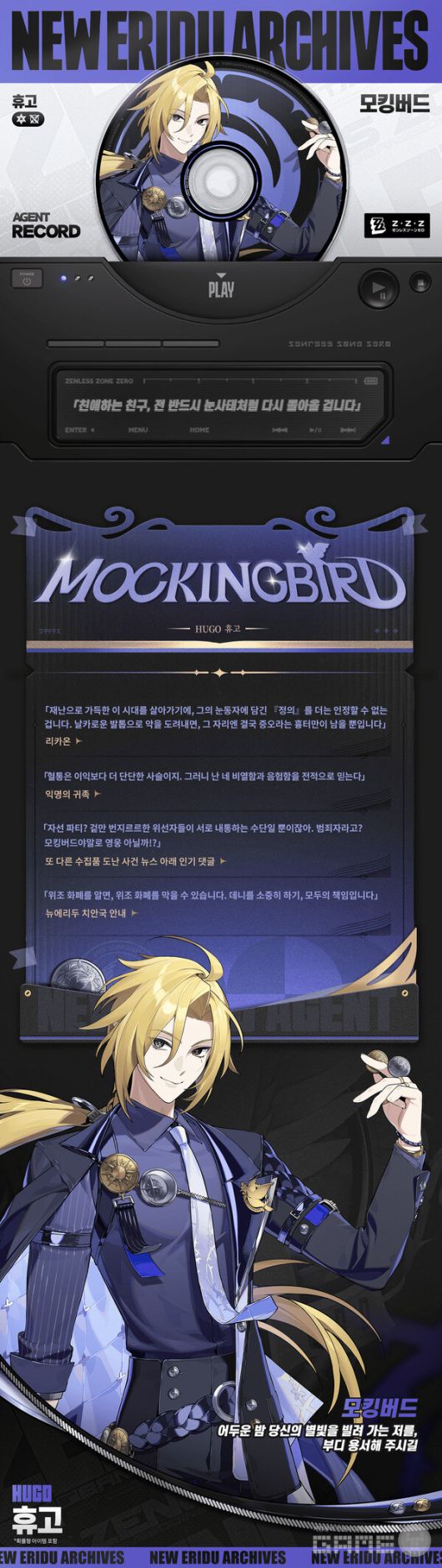 뿐만 아니라 모킹버드의 민첩한 Bangboo 로빈이 전투에 합류하며, 물리 속성 이상 에이전트 제인과 불 속성 격파 에이전트 라이터가 복각한다.