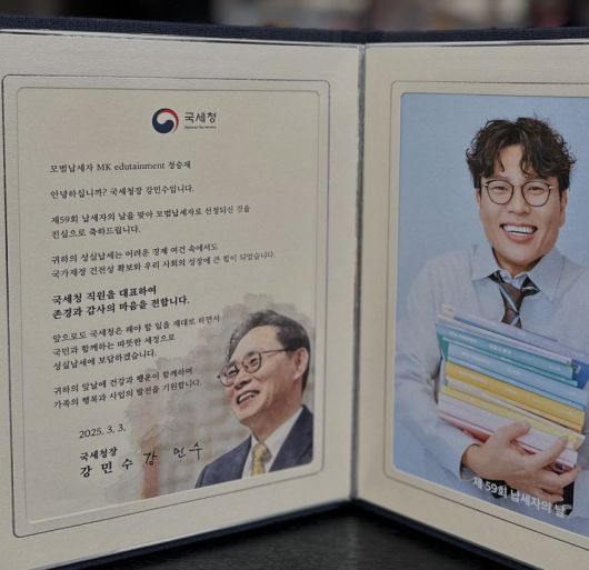 국세청은 표창장에서 “귀하의 성실납세는 어려운 경제 여건 속에서도 국가재정 건전성 확보와 우리 사회의 성장에 큰 힘이 되었습니다”라고 정승제를 표창했다.