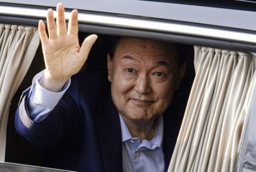 11일 서울 서초구 아크로비스타 사저 앞에 도착한 윤석열 전 대통령.(사진=뉴스1) |