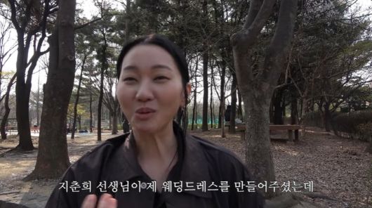 그는 "내가 결혼할 때 웨딩드레스를 디자이너 지춘희 선생님이 해주셨다"며 "결혼하기 20일 전쯤, 선생님이 나한테 주고 싶은 결혼 선물이 있다며 성수동으로 데려가셨다"고 밝혔다.