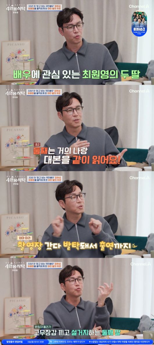 (엑스포츠뉴스 장인영 기자) '4인용식탁' 최원영이 넘치는 끼의 두 딸을 자랑했다.