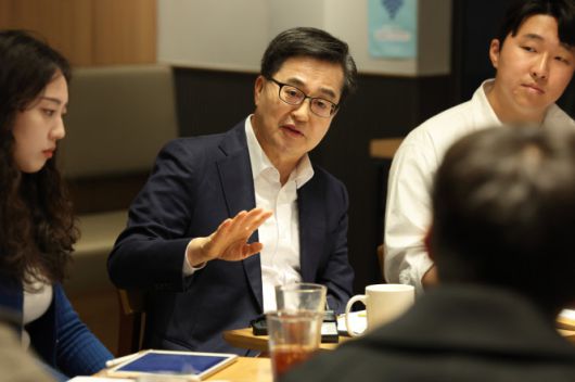 조기 대선 출마 의사를 밝힌 김동연 경기도지사가 14일 사실상 대선 예비후보로서의 첫 공식 일정으로 청년들과의 간담회를 선택했다. 금융 지원, 대학 등록금 문제, 지역 균형 발전 등 다양한 주제로 청년들과 토론을 벌인 김 지사는 유력 대선 후보인 이재명 더불어민주당 전 대표의 정책인 ‘기본 소득’과 자신의 ‘기회 소득’은 다르다며 차별화에 나서는 모습을 보이기도 했다.