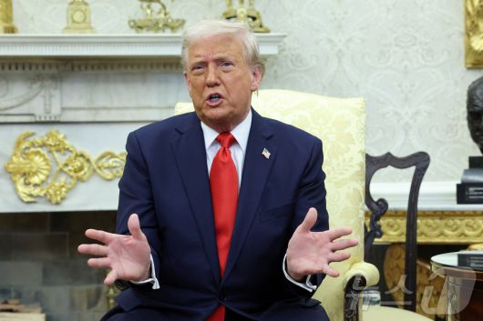 도널드 트럼프 미국 대통령이 14일(현지시간) 워싱턴DC 백악관 집무실에서 나입 부켈레 엘살바도르 대통령과 만난 자리에서 자동차 관세에 대해 언급하고 있다. ⓒ 로이터=뉴스1 ⓒ News1 류정민 특파원 |