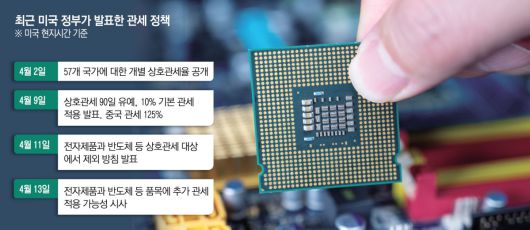 이틀 뒤 트럼프 대통령은 반박에 나섰다. 그는 13일 “관세 예외를 발표한 적이 없다”며 “다른 관세 범주로 옮겨가는 것”이라고 했다. 또다시 상호관세에서 빠진 전자제품도 반도체 품목 관세에 포함될 가능성이 커진 것이다.