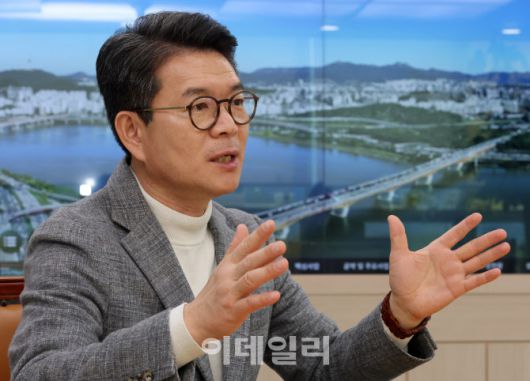 정원오 성동구청장이 지난 7일 이데일리와의 인터뷰에서 그간의 성과, 앞으로의 구정 방향에 대해 설명하고 있다. (사진=방인권 기자) |
