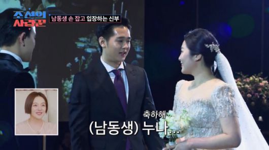 그리고 딸 윤채영이 버진로드를 걷는 대망의 순간도 공개됐다. 윤채영은 양수경의 친아들이자, '사촌에서 동생'이 된 남동생의 손을 잡고 입장했다. 친정 아빠 대신 든든히 곁을 지킨 남동생은 버진로드 끝에서 기다리고 있는 매형에게 누나의 손을 건넸다. 이 모습에 감동한 사랑꾼 MC들은 결국 눈물을 터트렸다. 잘 버티던 양수경도 신혼부부가 양가에 인사를 건네자 결국 눈물을 흘렸다. VCR을 지켜보며 오열 중이던 황보라는 "언니가 제일 슬플 것"이라며 강수지에게도 같은 미래를 예언(?)해 웃음을 유발했다.