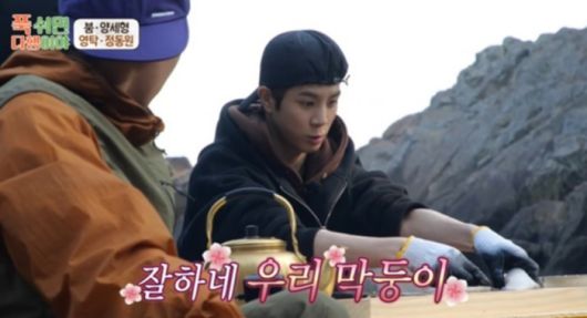 정동원은 무인도에서 잡은 말똥성게를 보고 “이게 뭐지?”라며 박살 내 모두를 놀라게 했다. 이에 붐은 “이걸 왜 깼냐”라며 “이게 말똥성게야. 깼으니까 먹어야지”라고 먹방을 선보여 웃음을 자아냈다.