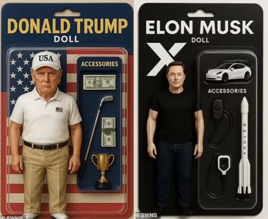 도널드 트럼프 미국 대통령과 일론 머스크 테슬라 최고경영자(CEO)의 바비코어 인형. [사진 출처 = 데일리메일] |