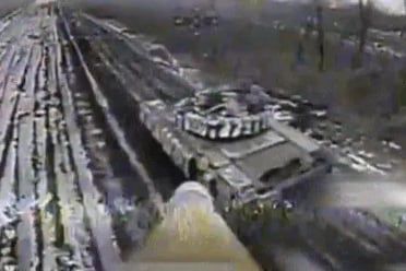 우크라이나군의 자폭드론이 러시아군 탱크를 타격하는 장면이 담긴 사진/우크라이나 보안국(SSU) 트위터 |