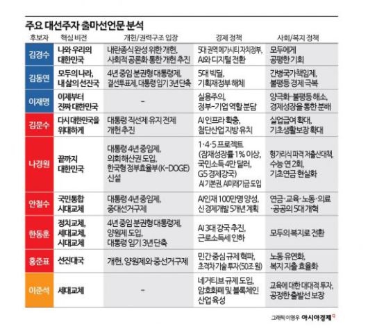 편집자주'6·3 대선'은 대한민국 미래를 좌우할 분수령이다. 주요 대선주자들은 연이은 출마선언을 통해 도전의 각오, 국정 청사진 등을 제시했다. 출마선언에 담긴 그들의 메시지 내용과 출사표의 콘셉트, 대선 예비후보로서의 첫 공식행보를 3회에 걸쳐 분석해 본다.