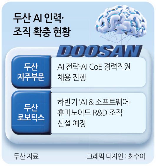 두산그룹이 인공지능(AI)을 미래 핵심 성장 축으로 삼고, 그룹 차원의 인력 확충과 조직 재편 등으로 기술 내재화에 속도를 내고 있다.