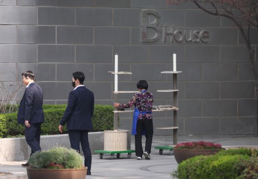 지난 11일 서울 서초구 윤석열 전 대통령의 사저 아크로비스타에서 관계자가 캣타워를 옮기고 있다. [연합] |