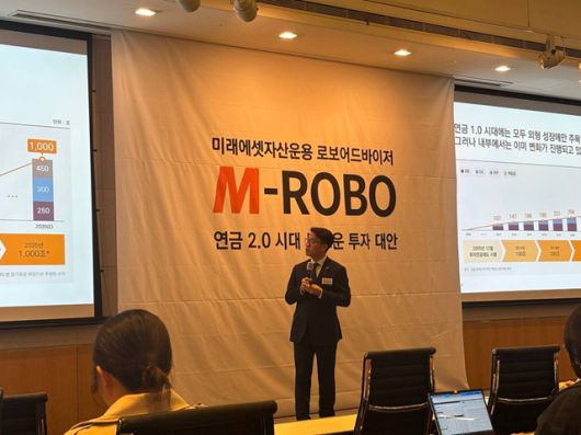 15일 미래에셋자산운용은 여의도 FKI컨퍼런스센터에서 퇴직연금 전용 로보어드바이저 'M-ROBO' 출시 기자간담회를 열었다. 미래에셋자산운용은 국내 종합 자산운용사 가운데 최초로 퇴직연금 전용 로보어드바이저 서비스를 선보였다.