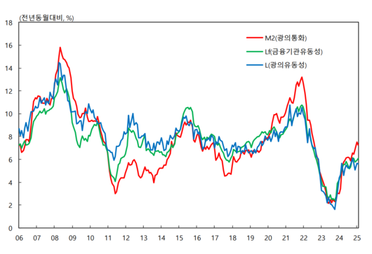 15일 한국은행이 발표한 ‘2월 통화 및 유동성’에 따르면 지난달 광의통화(M2) 잔액은 4229조5255억원으로 한 달 전보다 25조7240억원(+0.6%) 증가했다. 지난 1월(+0.5%)보다 증가율이 확대됐다.