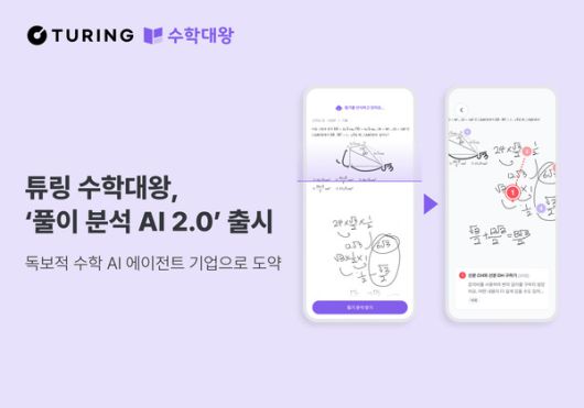 자기주도형 인공지능(AI) 수학 학습 플랫폼 '수학대왕' 운영사 튜링이 AI 에이전트 기능을 강화한 학생 맞춤형 '풀이 분석 AI'를 새롭게 출시했다고 15일 밝혔다. 학생의 풀이 기록을 더 섬세하게 분석하는 '단계별 풀이 분석' 기능과 질의응답 게시판의 AI 답변을 강화한 'AI 3초 답변' 기능이 추가됐다.