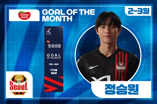 프로축구 K리그1 FC서울 정승원이 올 시즌 2∼3월 K리그 ‘안심을 마시다 동원샘물 이달의 골’을 수상했다.