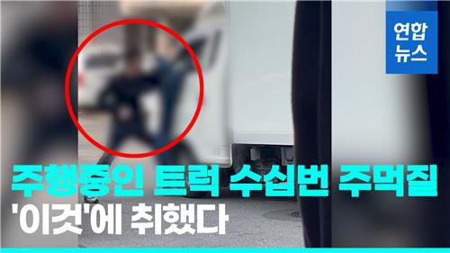 급기야 남성은 트럭 본체를 주먹으로 때렸는데 출동한 경찰 앞에서도 멈추지 않았습니다.
