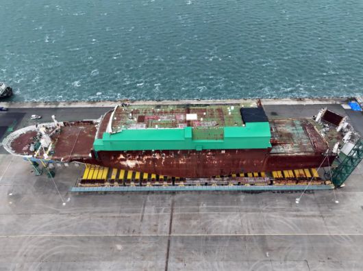 세월호 참사 11주기를 이틀 앞둔 14일 전남 목포시 고하도 신항만에 거치된 세월호 선체 모습. 연합뉴스 제공 |