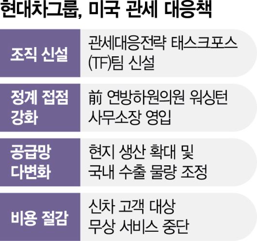 현대자동차그룹이 도널드 트럼프 행정부의 관세정책에 대응할 조직을 강화한다. 최고경영자(CEO) 직속 태스크포스팀(TFT)을 구성하고 미국의 대관(對官) 업무를 총괄하는 자리에는 공화당 출신의 전직 연방하원의원을 영입해 미국 정계와의 접점을 확대할 방침이다.