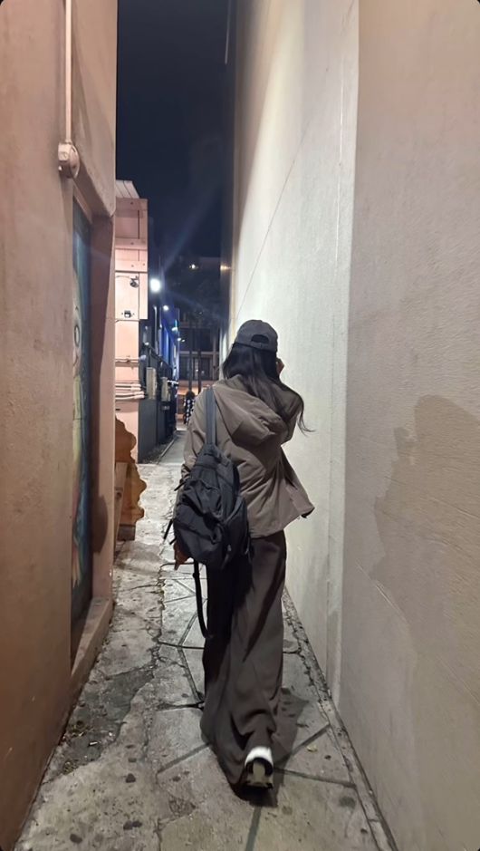 다음 사진에서 수수한 복장으로 일상의 풍경을 보여주었다. 어두운 골목길을 걷는 내추럴한 모습, 그리고 스트라이프 티셔츠를 입고 테라스 카페에서 조용히 앉아 있는 일상 사진까지. 효민은 화려함 뒤 여유로운 감성을 보여주며, 신혼여행의 또 다른 얼굴을 선보였다.