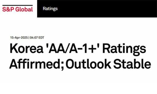 글로벌 신용평가사 스탠더드앤드푸어스(S&P)가 한국의 장기 국가신용등급을 종전과 같은 ‘AA’로 유지했다. 미국발 관세 전쟁 등은 악재로 작용하겠지만, 계엄 등 국내 정치 불안정은 정책기관들의 빠른 대응으로 경제·금융 시스템에 심각한 영향을 주지 않았다는 평가를 했다.