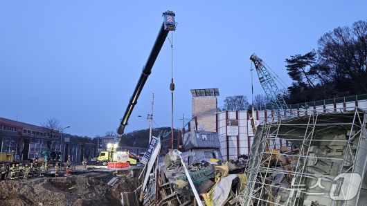 경기도소방재난본부에 따르면 구조 당국은 전날(14일) 밤부터 굴삭기를 이용해 실종자인 포스코이앤씨 소속 50대 근로자 A 씨 구조 작업을 진행 중이다.