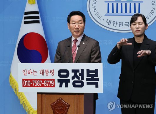 국민의힘 대선 경선 후보인 유정복 인천시장이 14일 서울 여의도 국회 소통관에서 저출생 종합대책 등 대선공약을 발표하고 있다. 〈사진=연합뉴스〉 |