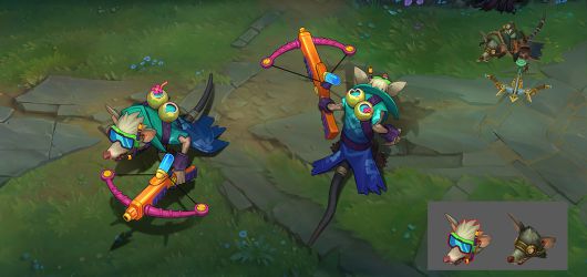 이외에도 '외전' 스킨 개념이 출시된다. 스킨 출시가 너무 늦거나 수가 적은 챔피언들을 위해 도입한 시스템으로 모든 챔피언들에게 다양한 종류의 스킨을 제공하기 위함이다. 첫 번째 외전 스킨은 '수영장 파티' 트위치'다.