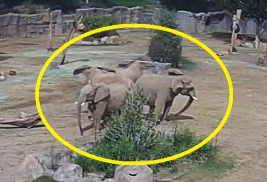지진이 발생하자 코끼리들이 재빠르게 모여 새끼를 중심에 둔 채 원형을 그리는 모습. 사진 미국 샌디에이고 동물원 야생동물 연합 X(엑스) 캡처 |
