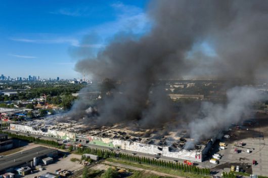지난해 5월 폴란드 수도 바르샤바의 대형 쇼핑몰 ‘메리빌스카44’에 대형 화재가 발생해 검은 연기가 치솟고 있다. 폴란드는 방화범의 배후가 러시아 정보기관이라고 비난했다. 바르샤바 EPA 연합뉴스 |