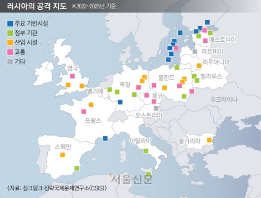 미 싱크탱크 전략국제문제연구소(CSIS)에 따르면 유럽에서 러시아의 사보타주 공격 건수는 2022년 3건에서 우크라이나를 침공한 뒤인 2023년 12건으로 1년 만에 약 4배로 증가했다. 또 지난해는 34건으로 거의 3배로 늘었다.