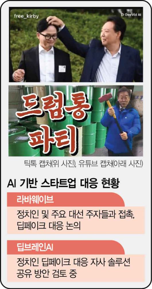한편 이번 조기 대선은 ‘AI 발전과 신뢰 기반 조성 등에 관한 기본법’이 내년 1월 시행되기 전에 치러지는 마지막 전국구 선거다. 추후 딥페이크물에 대한 투명성 확보 및 워터마크 표시 의무가 법제화될 경우 이를 가려내는 기술 수요가 더욱 커질 것으로 예상된다. 이날 한 스타트업 관계자는 “법이 시행된다면 공기업·수사기관에 탐지 프로그램을 납품하는 사례도 늘 것”으로 전망했다.