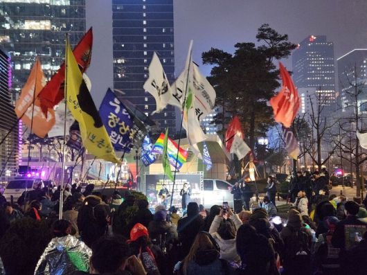 불과 몇달 전까지만 해도 상상하기 어려운 일이다. 2016~2017년 박근혜 퇴진 요구 촛불집회에서는 집회에 참여한 시민들이 노동단체의 깃발조차 못 들게 했다. 사회자가 마이크로 “거기 깃발 내리세요!”라고 호통을 치기도 했다. 노동단체의 깃발이나 구호가 마치 집회의 순수성을 침해하는 것처럼 생각하는 사람들이 많았다.