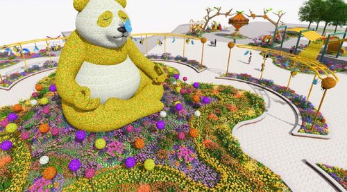 주제 광장인 '꿈꾸는 정원'에는 메인 조형물로 '황금빛 판다'가 자리를 잡는다. 높이 10m, 가로 폭 10m 이상의 대형 조형물인 황금빛 판다는 꽃의 기운을 모아 온 세상에 퍼뜨린다는 뜻을 담아 관람객을 맞는다.