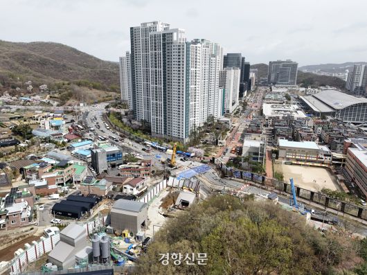 지난 13일 경기 광명시 일직동 신안산선 복선전철 붕괴 사고 현장이 추가 붕괴 우려와 기상악화로 실종자 수색 작업이 중단돼 있다. 지난 11일 이곳에선 지하터널 내부 기둥에 균열이 발생하면서 지하 공사 현장과 상부 도로 50m가량이 붕괴하는 사고가 발생했다. 2025.4.13 이준헌 기자 |