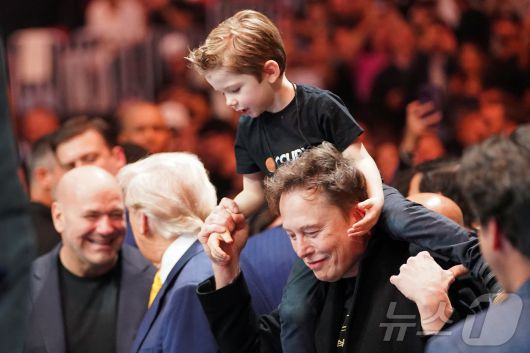 일론 머스크 테슬라 CEO와 아들 X가 12일(현지시간) 플로리다주 마이애미 카세야 센터에서 열린 UFC 경기를 관람하기 위해 도널드 트럼프 대통령과 도착을 하고 있다. 2025.04.13 ⓒ 로이터=뉴스1 ⓒ News1 우동명 기자 |