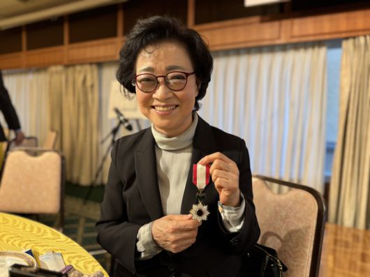16일 일본 도쿄 아르카디아 이치가야 호텔. 머리가 희끗희끗한 사람들이 하나둘 행사장으로 들어섰다. 신씨가 지난해 12월 일본 정부로부터 받은 욱일쌍광장(旭日双光章) 축하를 위한 모임이다. 일본 정부는 관계 증진이나 문화교류에 힘쓴 외국인에게 이 훈장을 주는데, 2015년 남편 이성대 씨의 수훈에 이은 두 번째다. 일본 정부가 부부에게 훈장을 준 것은 전례 없는 일로, 이날 축하연엔 약 10만원의 자비를 내고 참석한 일본인 등 60여 명이 함께 했다.