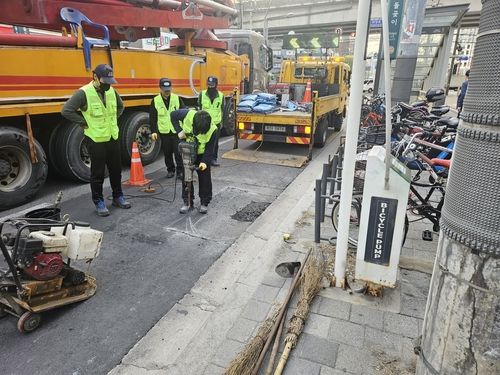 돌곶이역 앞 도로파임. 연합뉴스 |