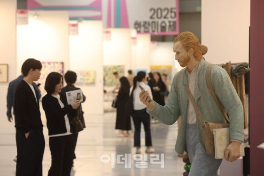 [이데일리 이영훈 기자] 16일 서울 강남구 코엑스에서 열린 '2025 화랑미술제'VIP 프리뷰'에서 관람객들이 전시된 작품들을 둘러보고 있다.