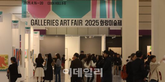 [이데일리 이영훈 기자] 16일 서울 강남구 코엑스에서 열린 '2025 화랑미술제'VIP 프리뷰'에서 관람객들이 전시된 작품들을 둘러보고 있다.