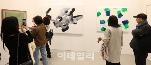 [이데일리 이영훈 기자] 16일 서울 강남구 코엑스에서 열린 '2025 화랑미술제'VIP 프리뷰'에서 관람객들이 전시된 작품들을 둘러보고 있다.