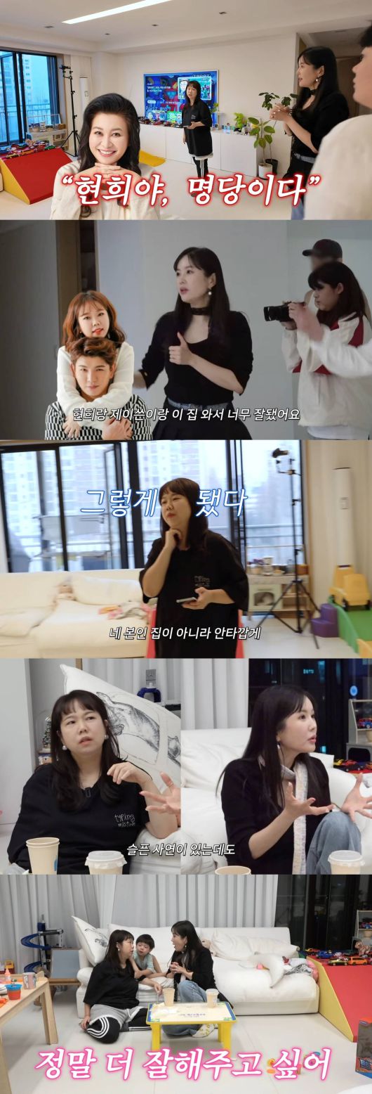뻥 뚫린 도로뷰를 본 장영란은 "사장님들이 대박치고 나간 집"이라고 감탄했고, 이어 홍현희는 "오은영 박사님이 저희 집에 와서 보시더니 '현희야, 명당이다'라고 하셨다"고 자랑했다.