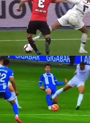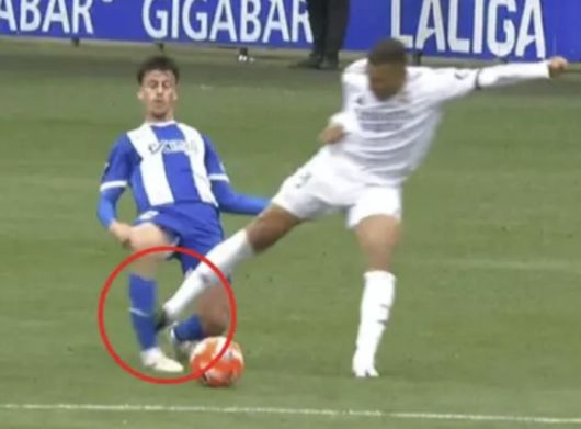 볼 경합 과정에서 알라베스 미드필더 안토니오 블랑코가 공 소유권을 가져갔으나 뒤늦게 들어온 음바페가 발바닥으로 블랑코의 정강이를 밟았다. 음바페가 빠른 속도로 달려들었기 때문에 체중이 완전히 실렸다면 다리가 부러질 수도 있었던 위험한 태클이었다.