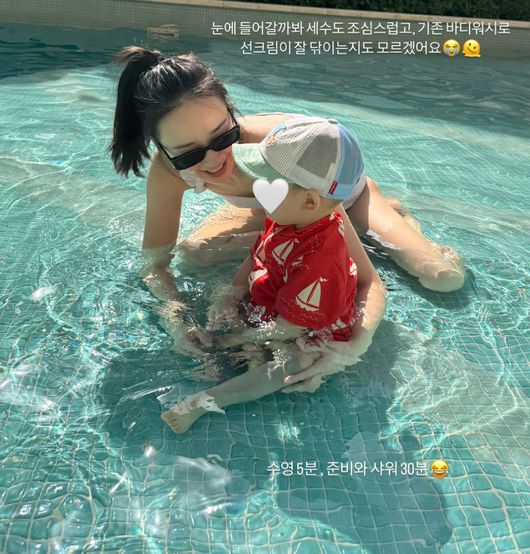 16일 손연재는 자신의 소셜 계정에 여러 장의 사진을 공개했다. 마카오로 아들과 함께 여행을 떠난 손연재는 아들과 함께 수영을 즐기는 모습을 공개해 시선을 끌었다.