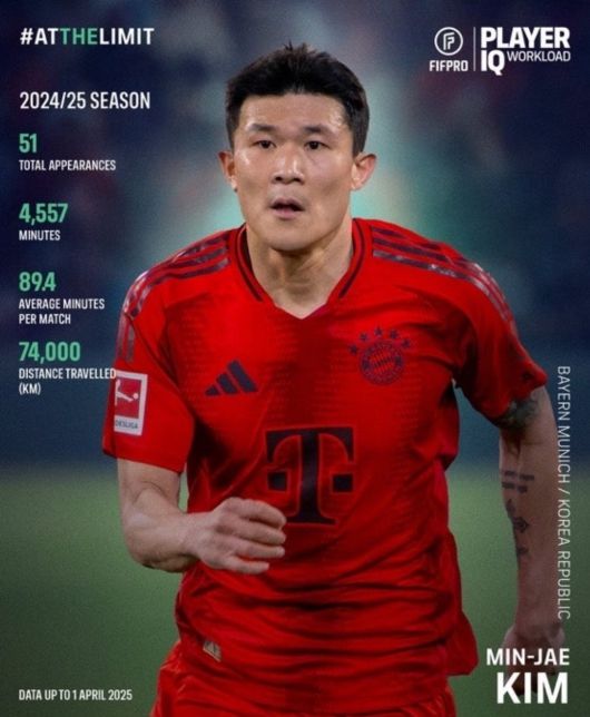 FIFPro는 "안전장치가 없으면 김민재는 장기적으로 큰 부상에 처할 위험이 있다"고 경고했다.